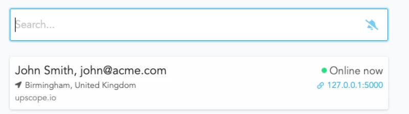 By default the list of users on https://app.upscope.io shows up as IP addresses and locations but you can make a user appear in the list as below and be able to search for them by name and email.