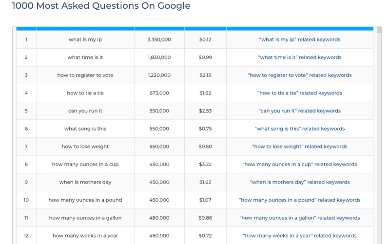 Below I've used the service SEMRush to look at Googled queries in the USA.